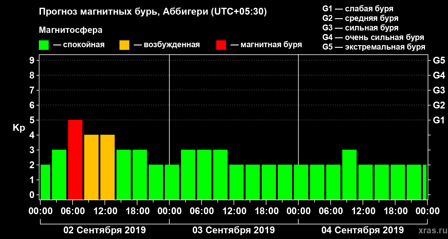 Прогноз магнитных бурь Аббигери — 2 сентября 2019 года