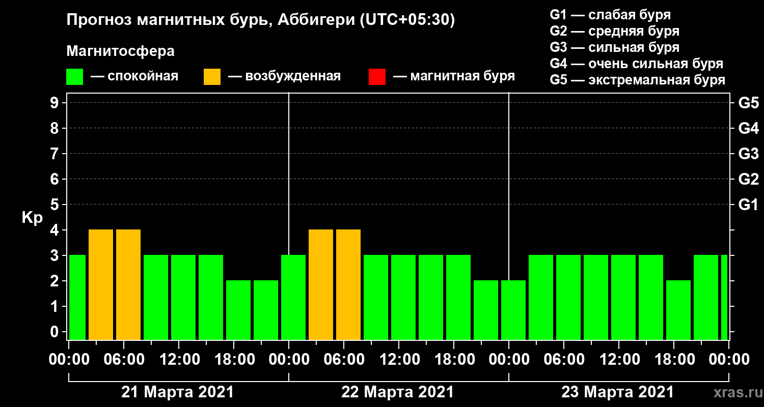 Прогноз магнитных бурь Аббигери на 21 марта 2021 года