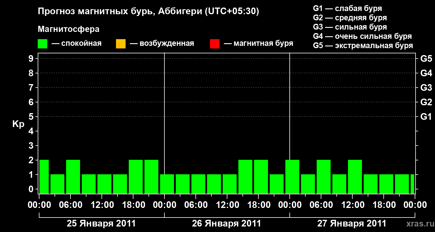 Прогноз магнитных бурь Аббигери — 25 января 2011 года