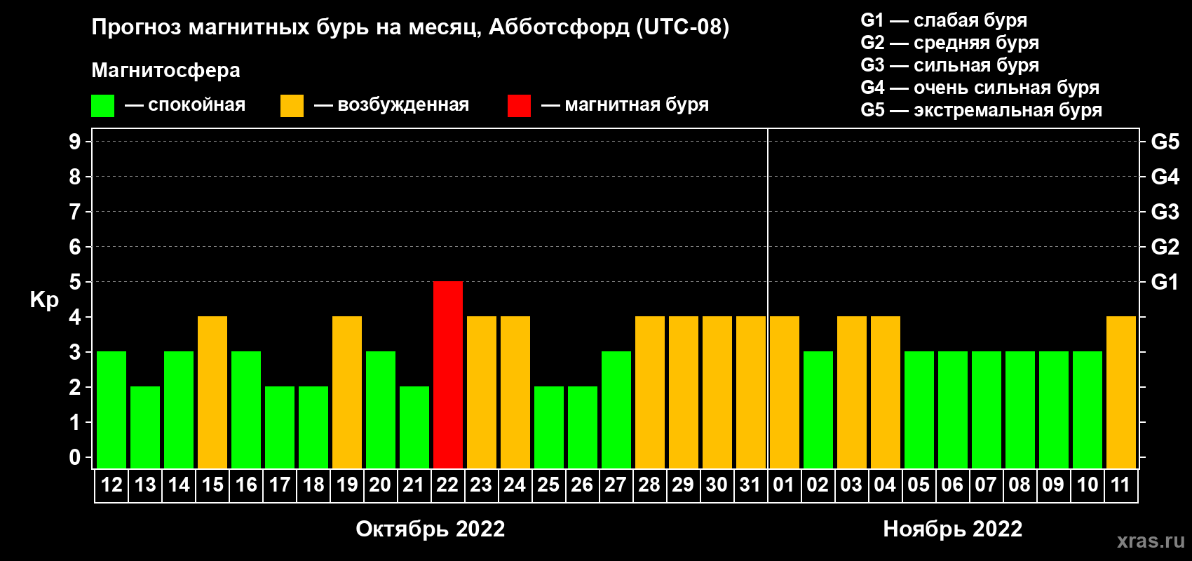 Прогноз магнитных бурь в Абботсфорде — 12 октября 2022 года