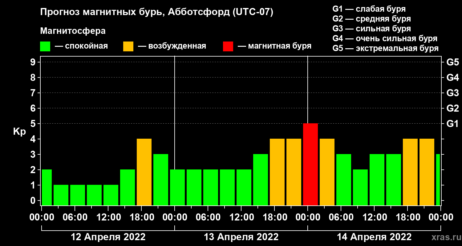 Прогноз магнитных бурь в Абботсфорде — 12 апреля 2022 года