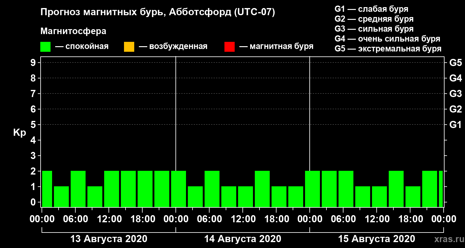 Прогноз магнитных бурь в Абботсфорде — 13 августа 2020 года