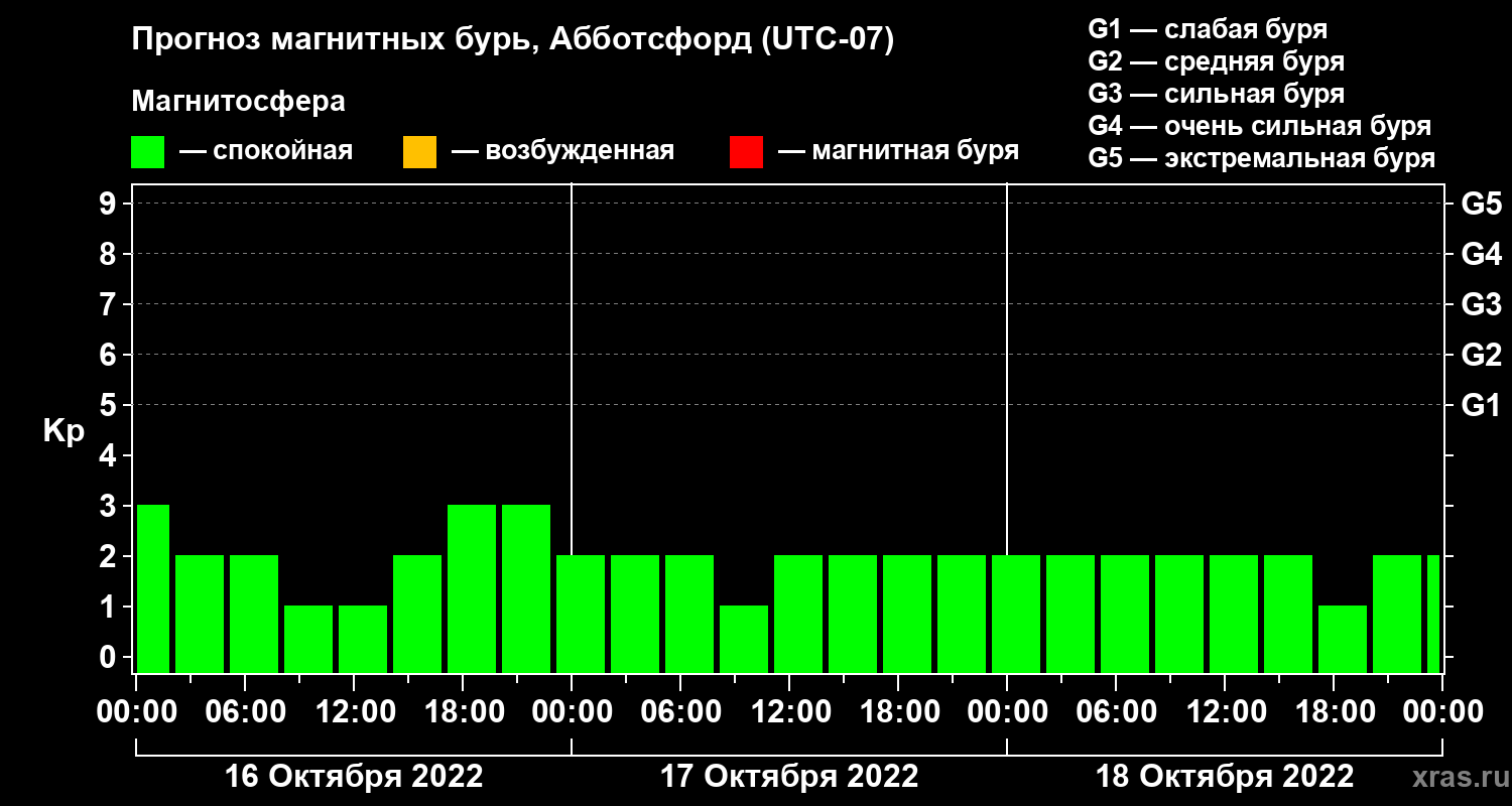 Прогноз магнитных бурь в Абботсфорде — 16 октября 2022 года