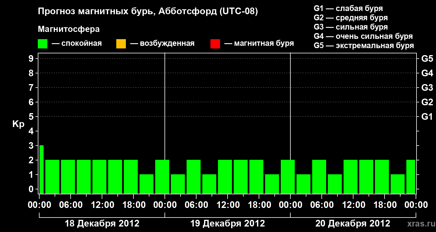 Прогноз магнитных бурь в Абботсфорде — 18 декабря 2012 года