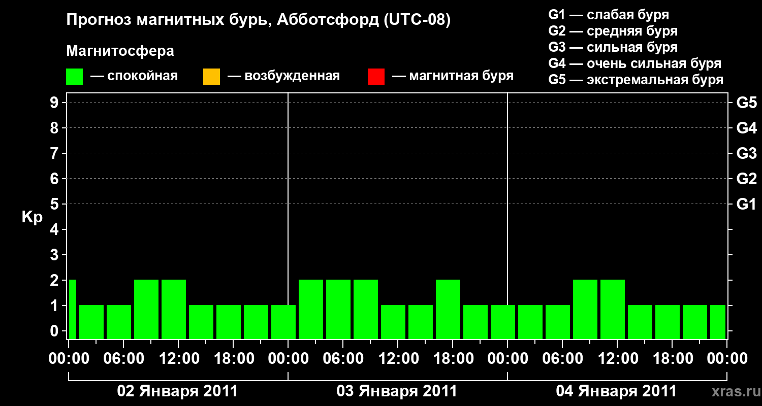 Прогноз магнитных бурь в Абботсфорде — 2 января 2011 года
