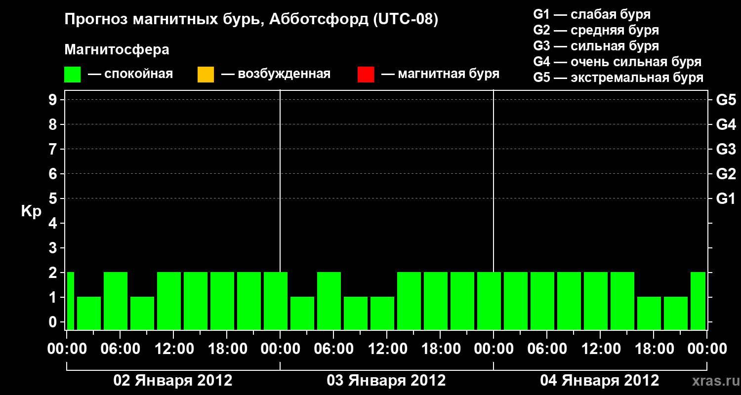 Прогноз магнитных бурь в Абботсфорде — 2 января 2012 года
