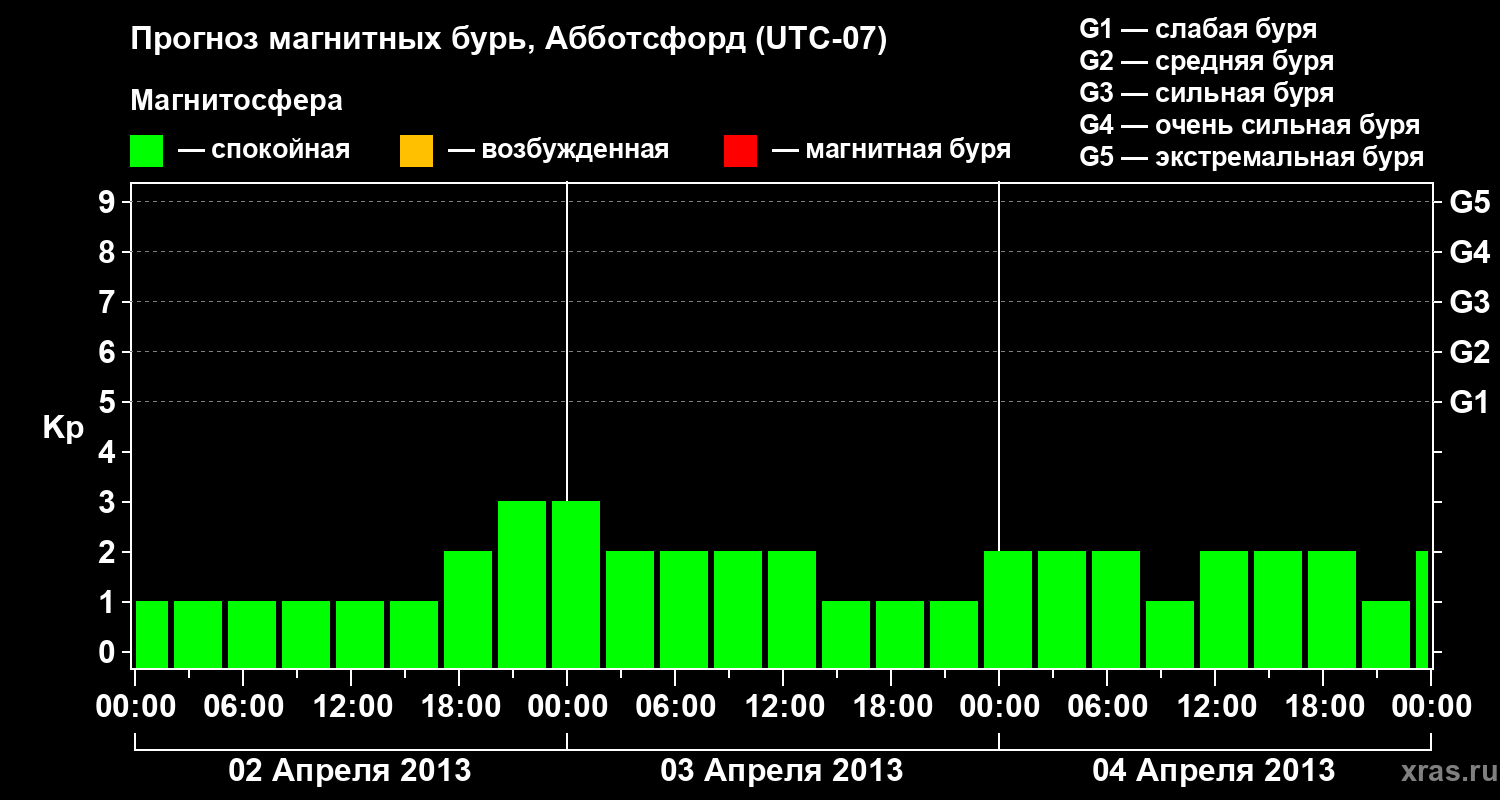 Прогноз магнитных бурь в Абботсфорде — 2 апреля 2013 года