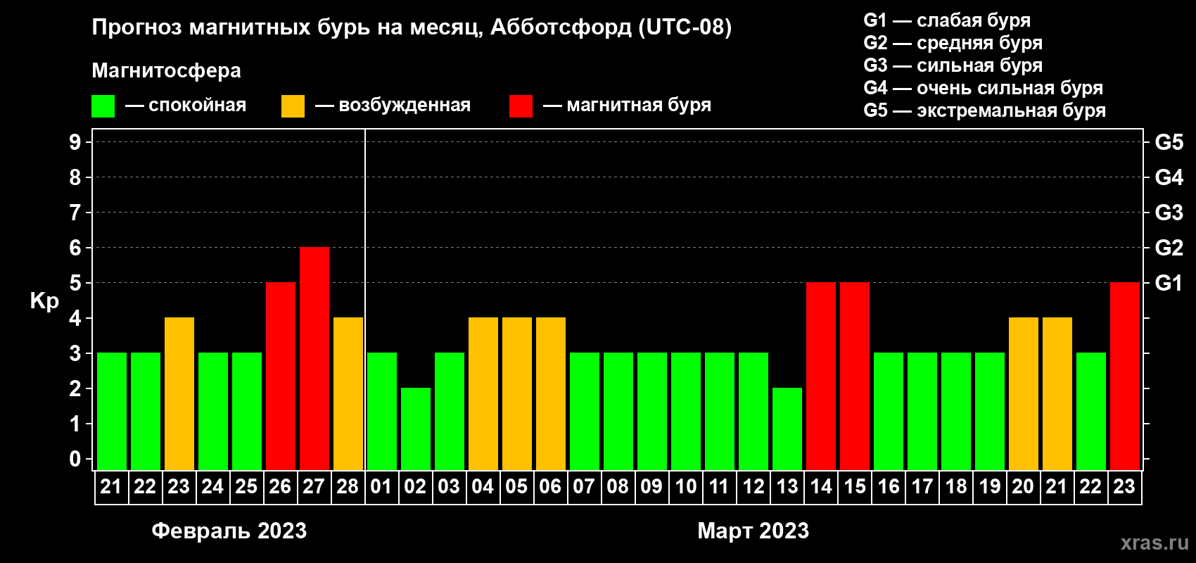 Прогноз магнитных бурь в Абботсфорде — 21 февраля 2023 года