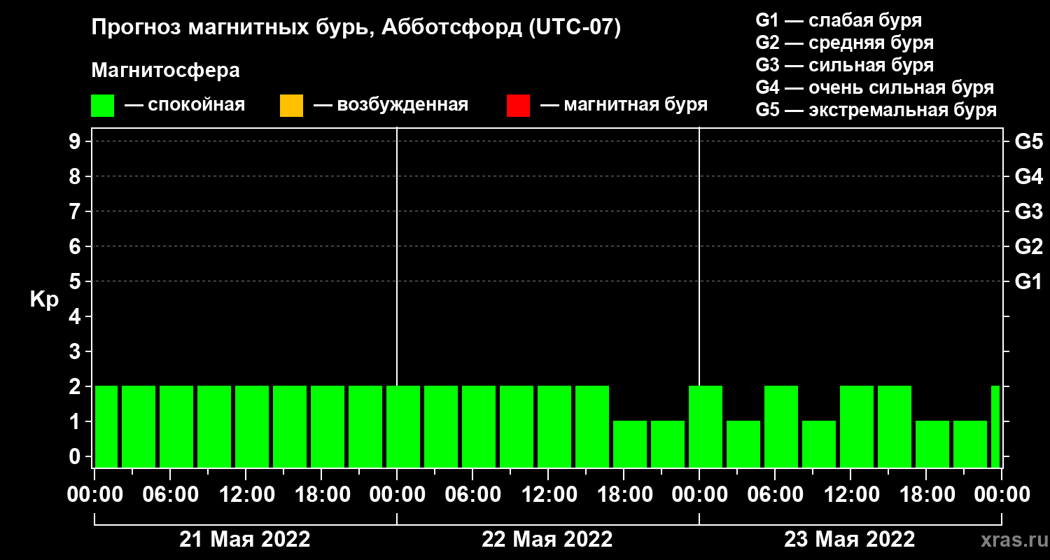 Прогноз магнитных бурь в Абботсфорде — 21 мая 2022 года