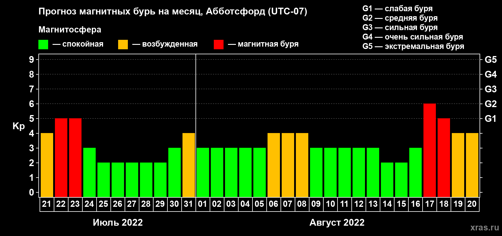 Прогноз магнитных бурь в Абботсфорде — 21 июля 2022 года