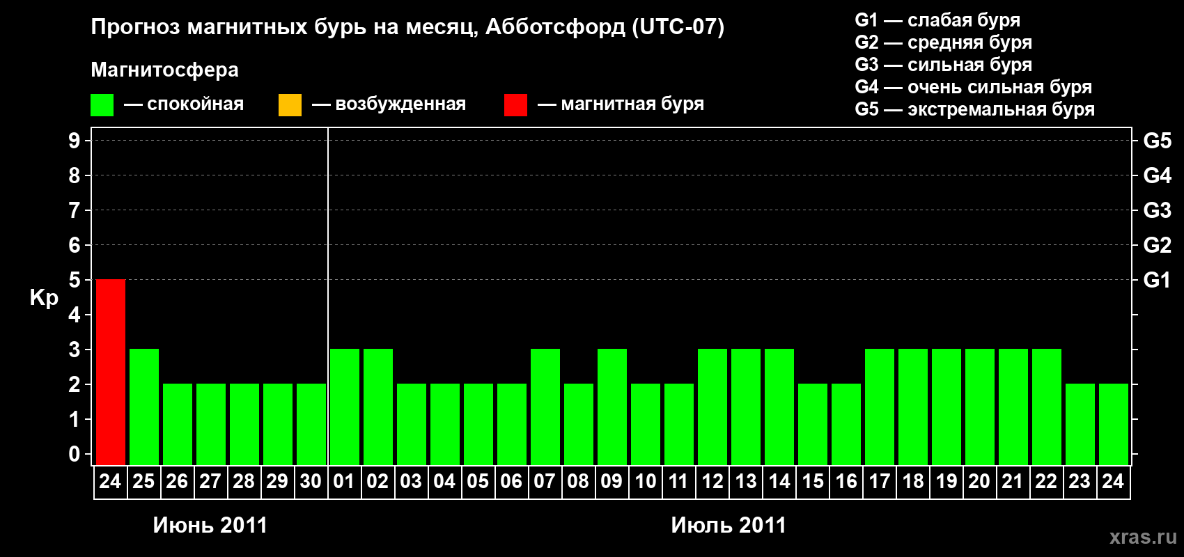 Прогноз магнитных бурь в Абботсфорде — 24 июня 2011 года