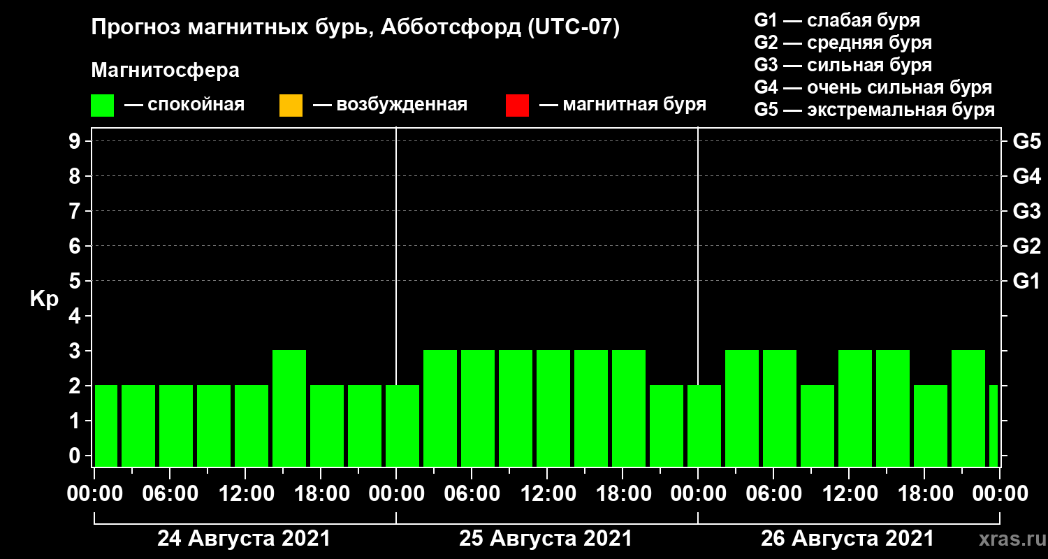 Прогноз магнитных бурь в Абботсфорде — 24 августа 2021 года