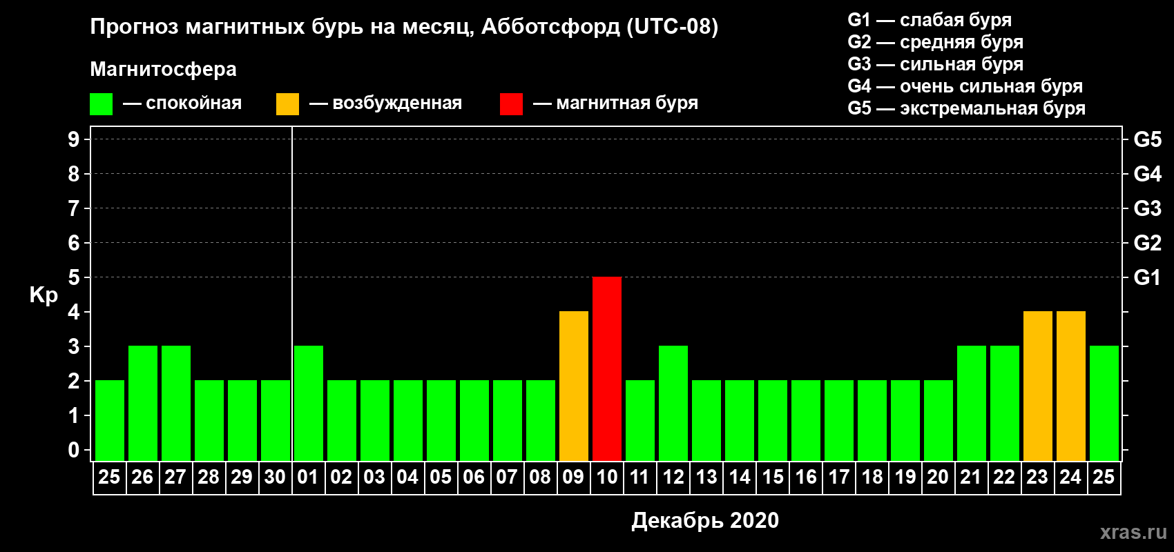 Прогноз магнитных бурь в Абботсфорде — 25 ноября 2020 года