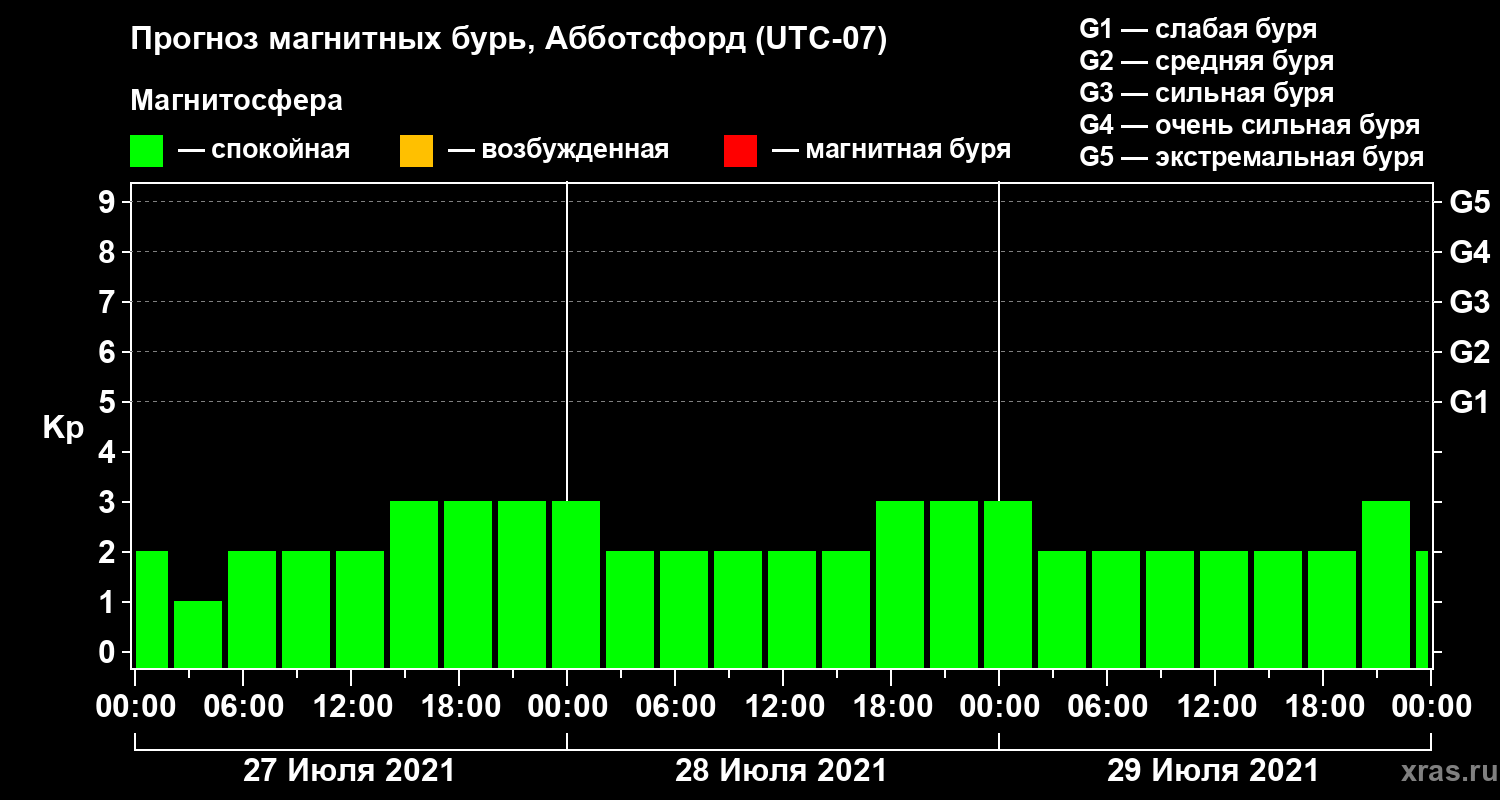Прогноз магнитных бурь в Абботсфорде — 27 июля 2021 года