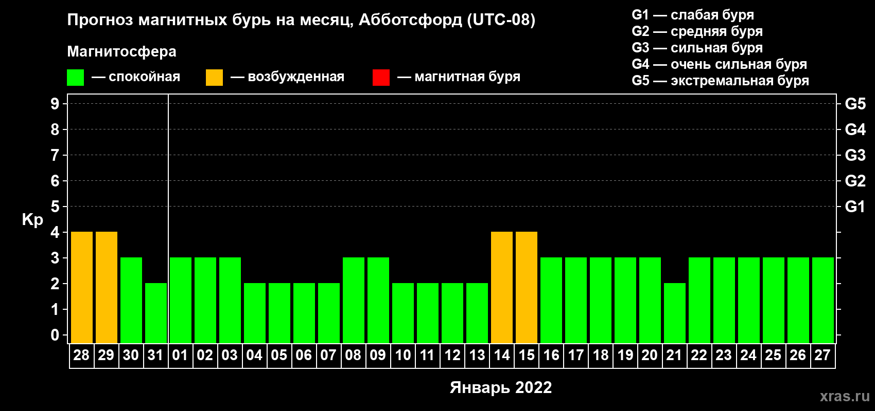 Прогноз магнитных бурь в Абботсфорде — 28 декабря 2021 года