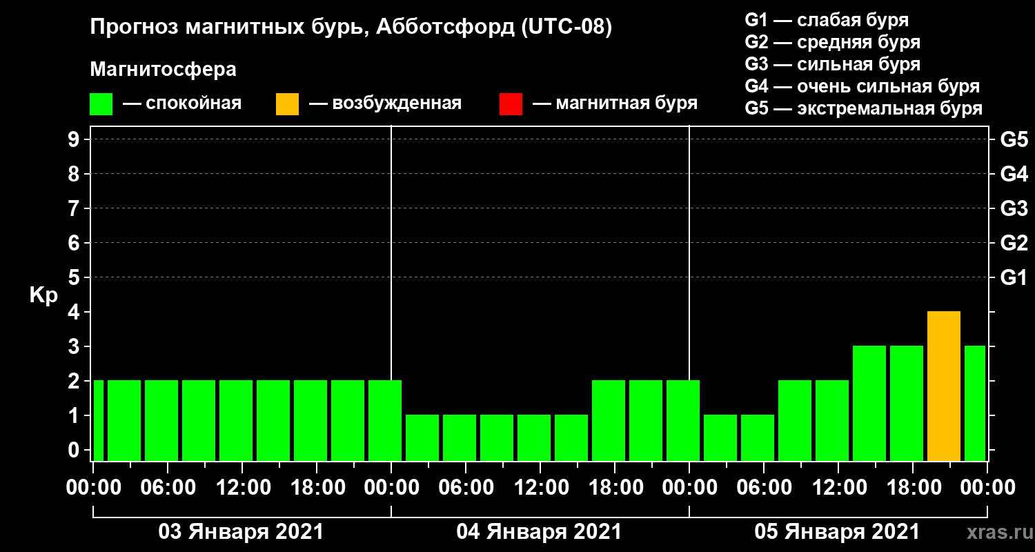 Прогноз магнитных бурь в Абботсфорде — 3 января 2021 года