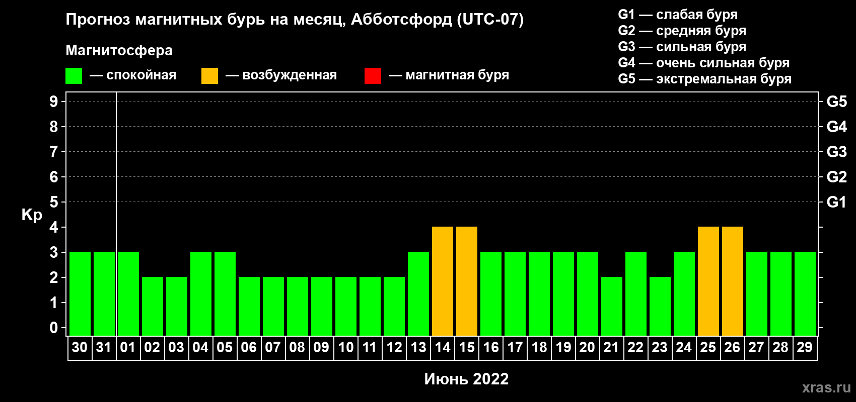 Прогноз магнитных бурь в Абботсфорде — 30 мая 2022 года