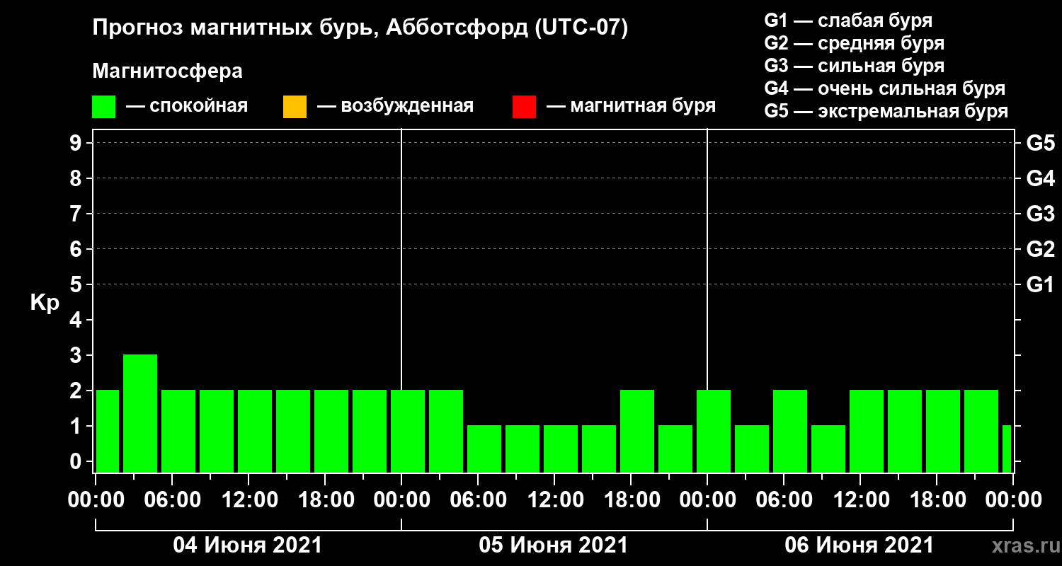 Прогноз магнитных бурь в Абботсфорде — 4 июня 2021 года