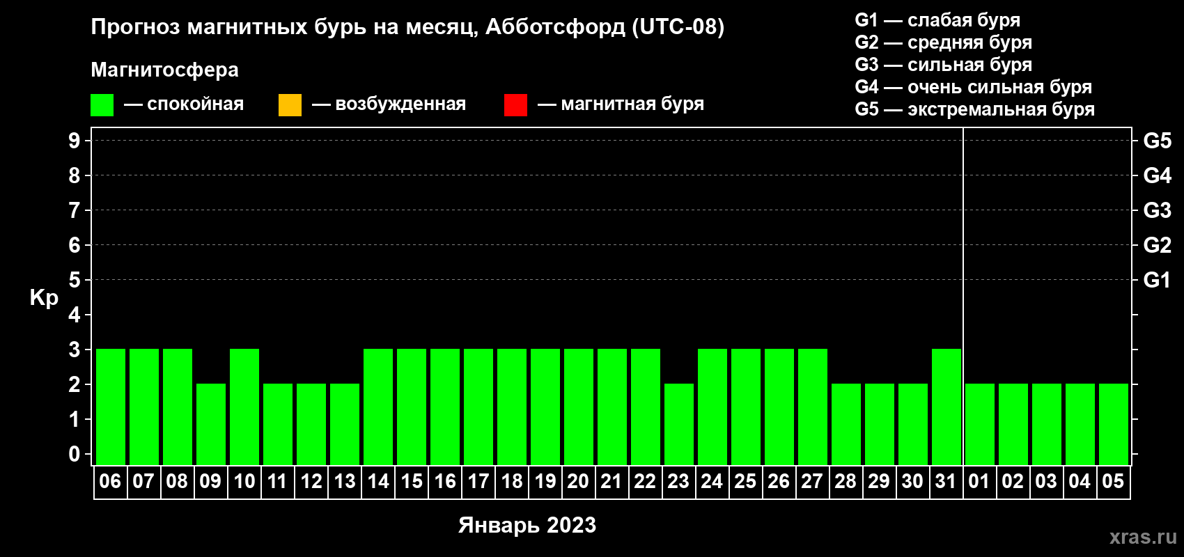 Прогноз магнитных бурь в Абботсфорде — 6 января 2023 года
