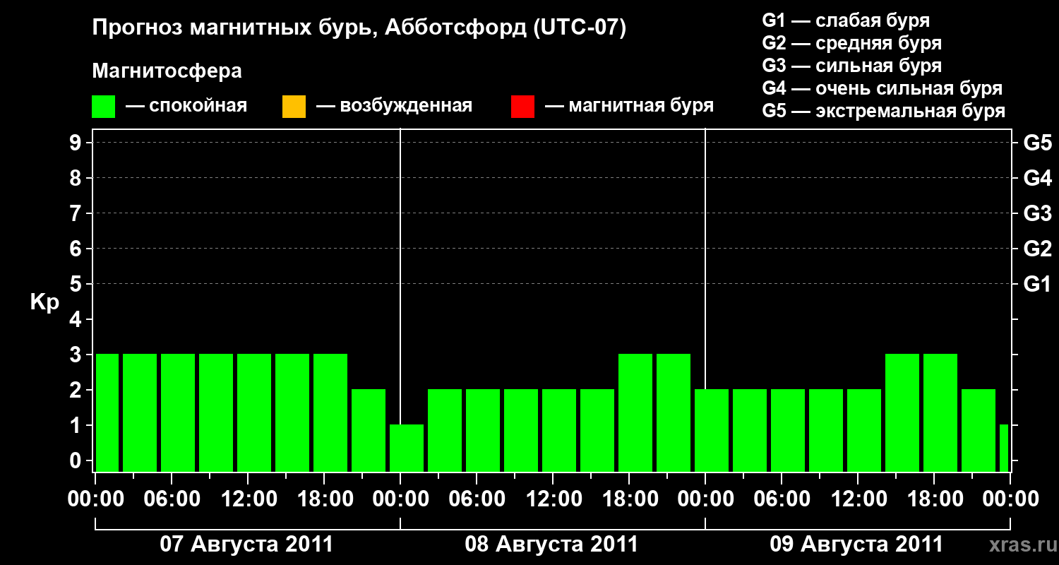 Прогноз магнитных бурь в Абботсфорде — 7 августа 2011 года