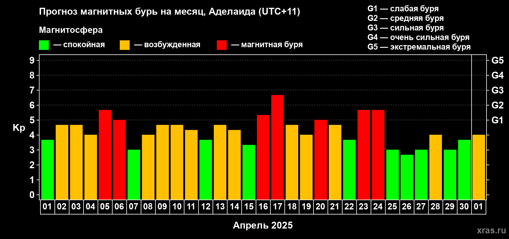 Прогноз магнитных бурь в Аделаиде — 1 апреля 2025 года