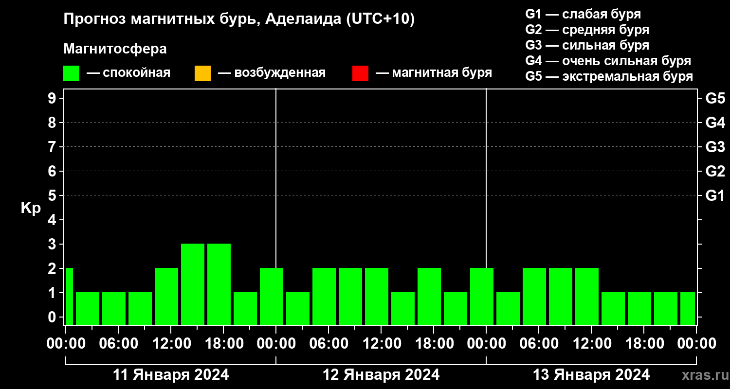 Прогноз магнитных бурь в Аделаиде — 11 января 2024 года