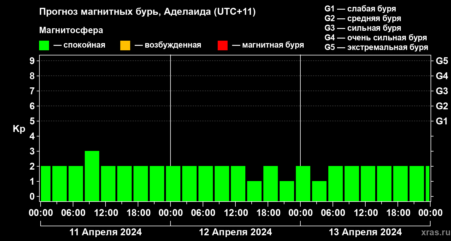 Прогноз магнитных бурь в Аделаиде — 11 апреля 2024 года