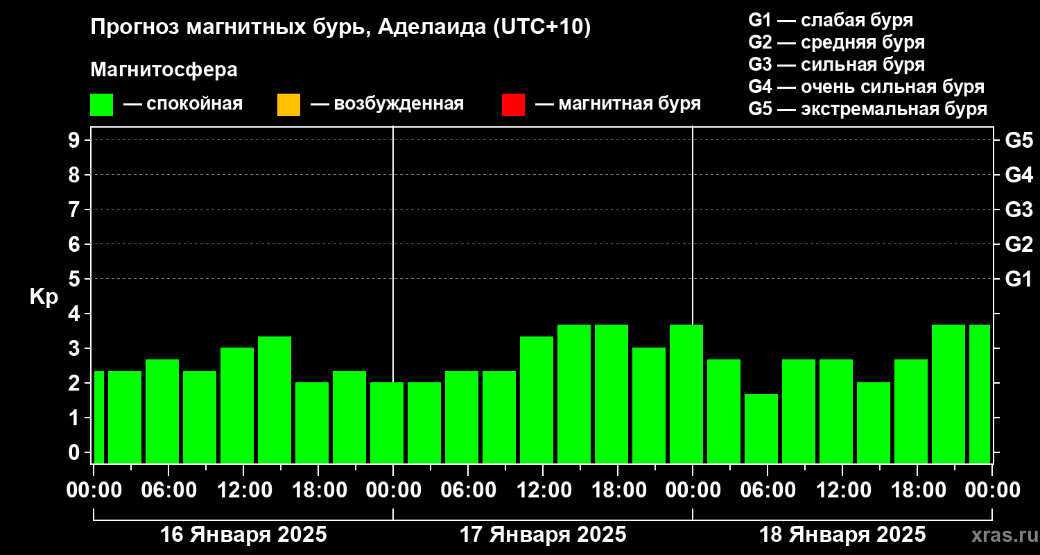 Прогноз магнитных бурь в Аделаиде — 16 января 2025 года