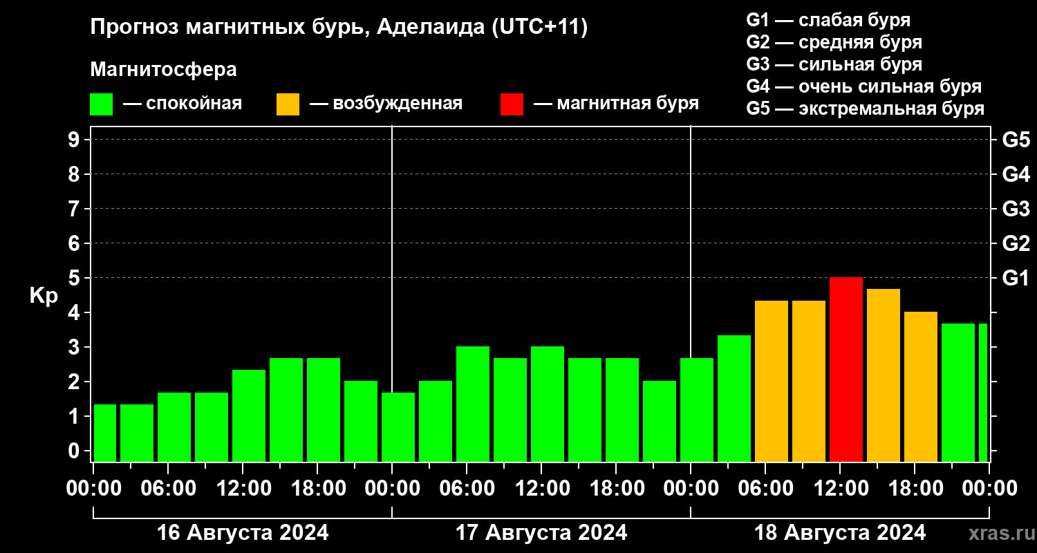 Прогноз магнитных бурь в Аделаиде — 16 августа 2024 года