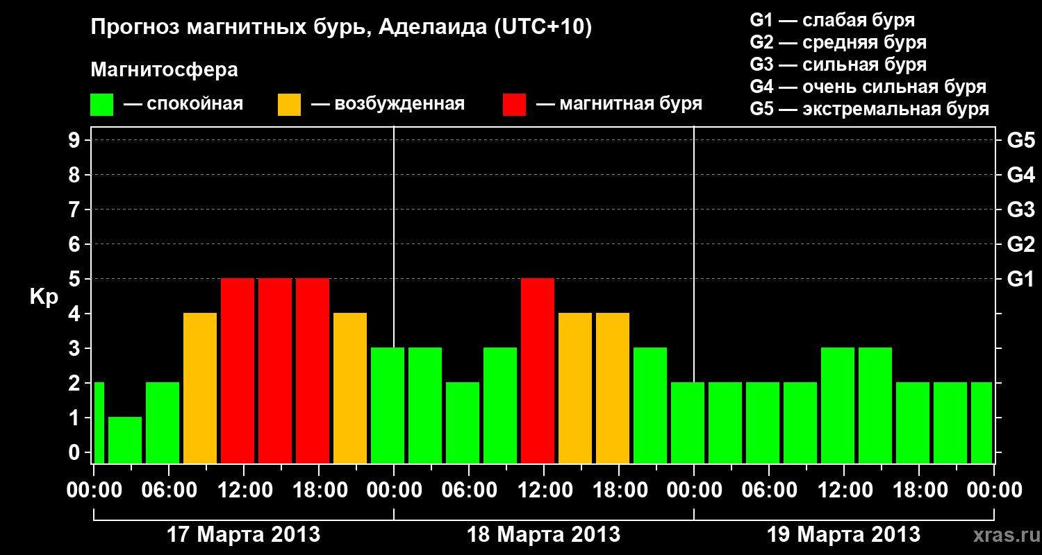 Прогноз магнитных бурь в Аделаиде — 17 марта 2013 года