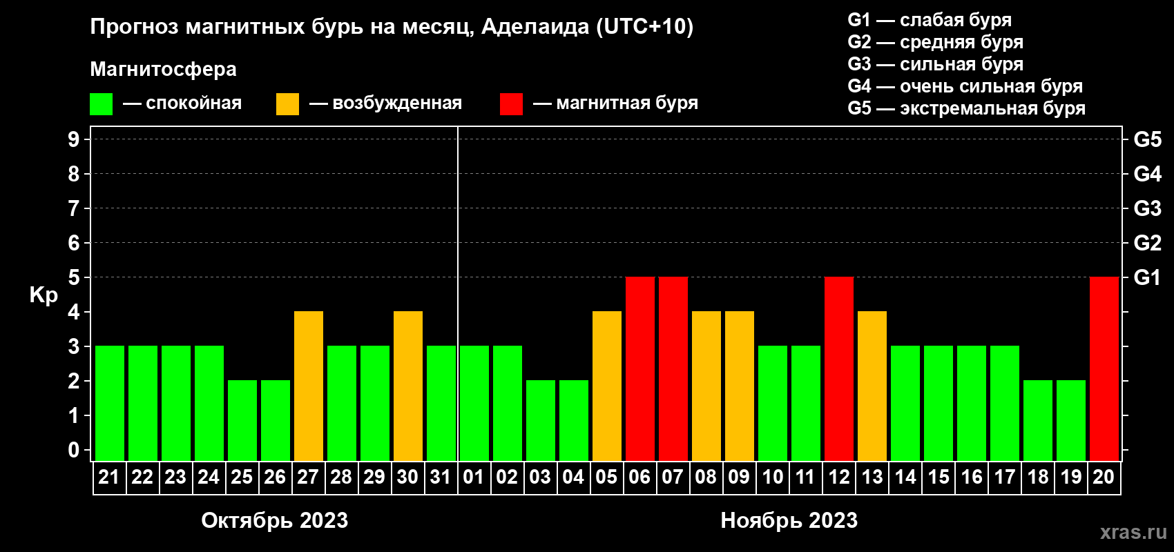 Прогноз магнитных бурь в Аделаиде — 21 октября 2023 года