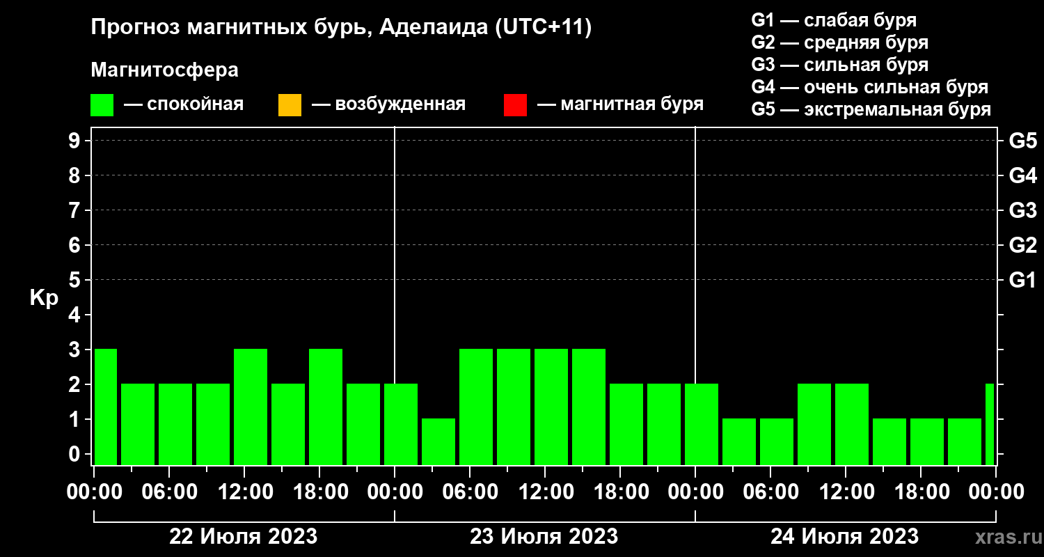 Прогноз магнитных бурь в Аделаиде — 22 июля 2023 года