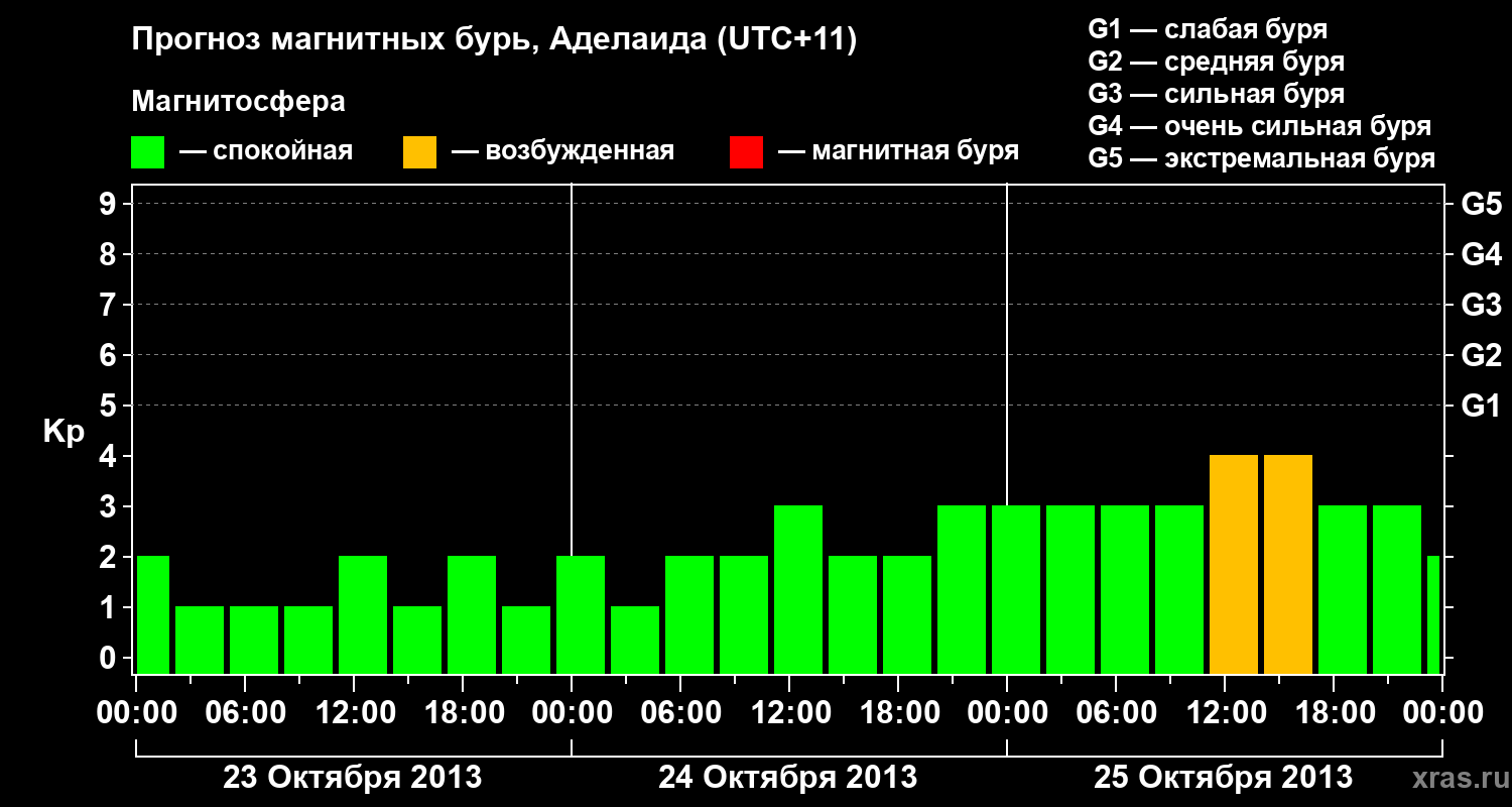 Прогноз магнитных бурь в Аделаиде — 23 октября 2013 года