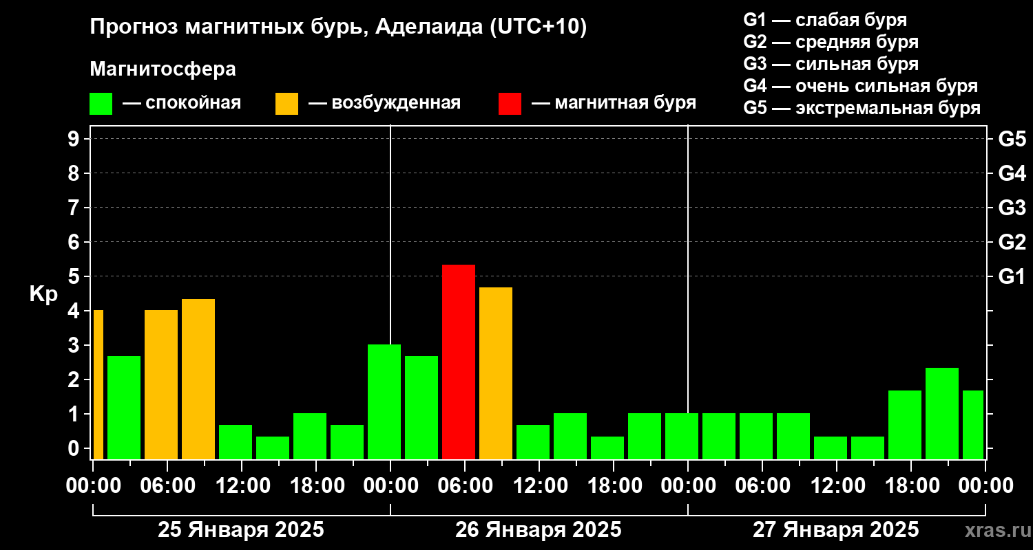 Прогноз магнитных бурь в Аделаиде — 25 января 2025 года