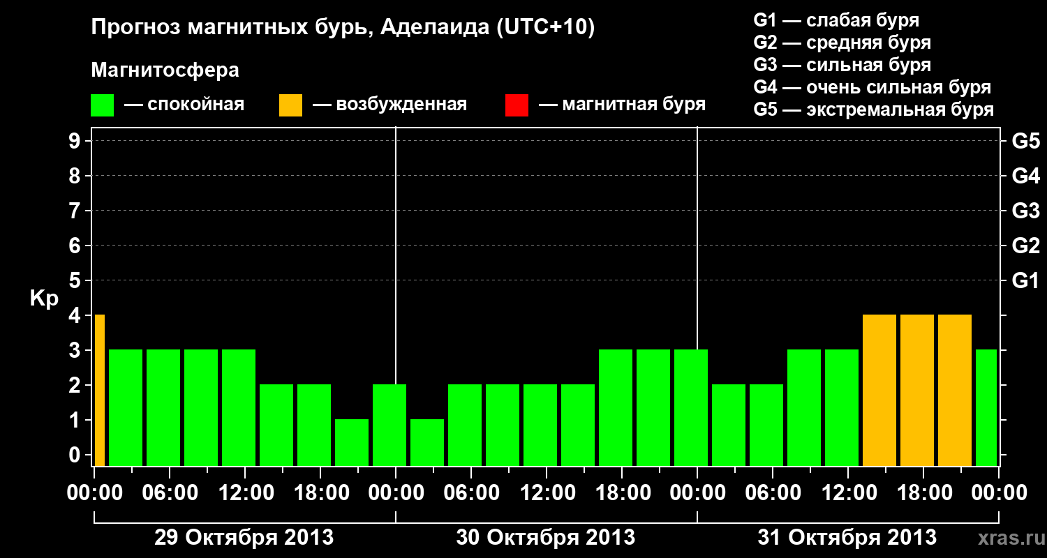 Прогноз магнитных бурь в Аделаиде — 29 октября 2013 года