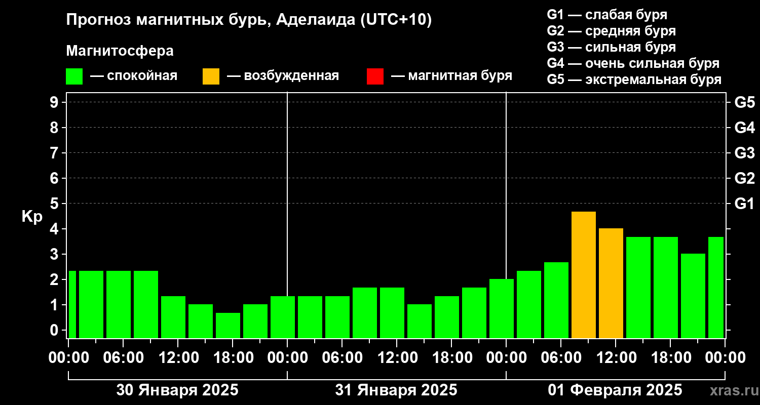 Прогноз магнитных бурь в Аделаиде — 30 января 2025 года