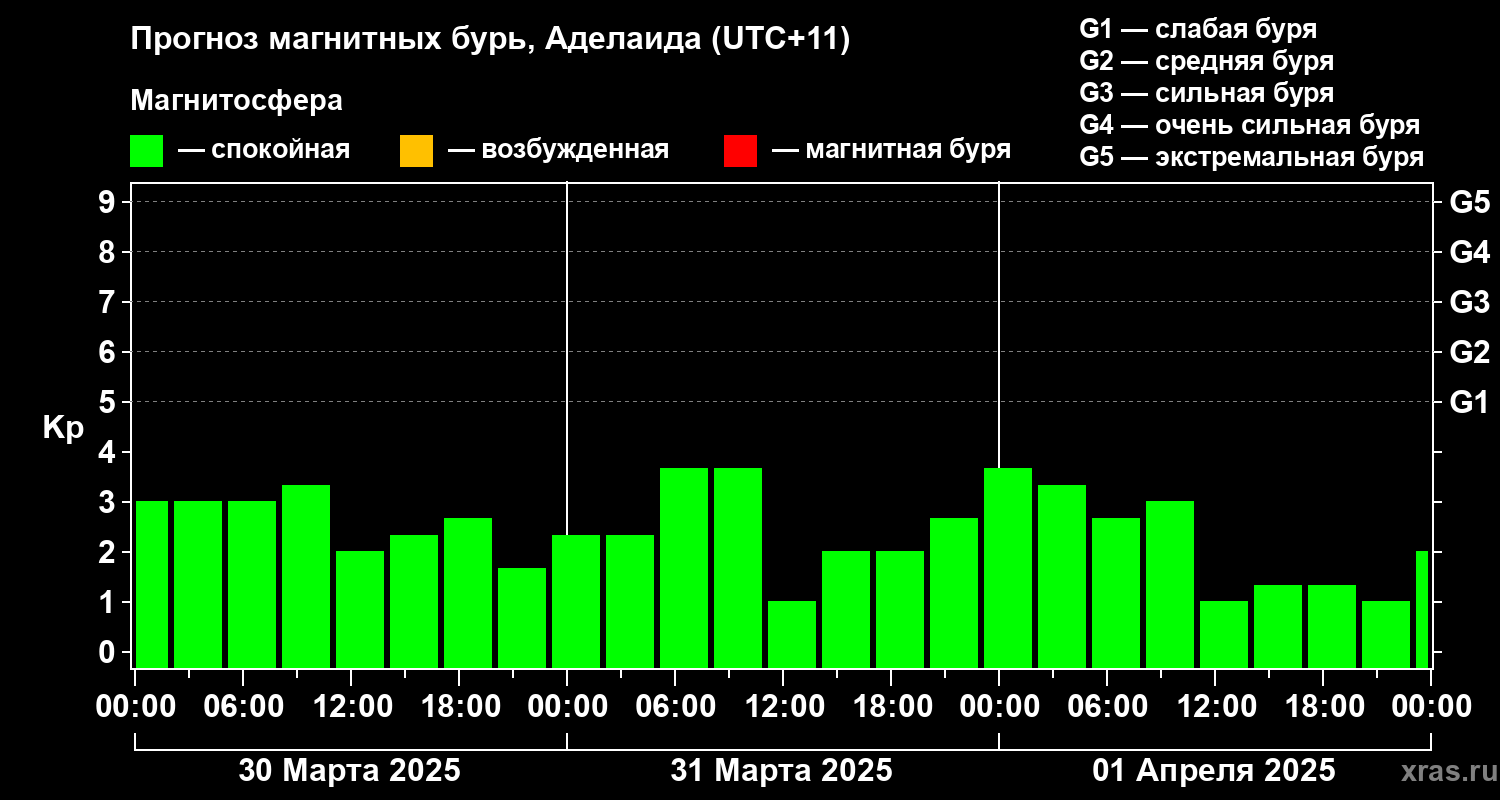 Прогноз магнитных бурь в Аделаиде — 30 марта 2025 года