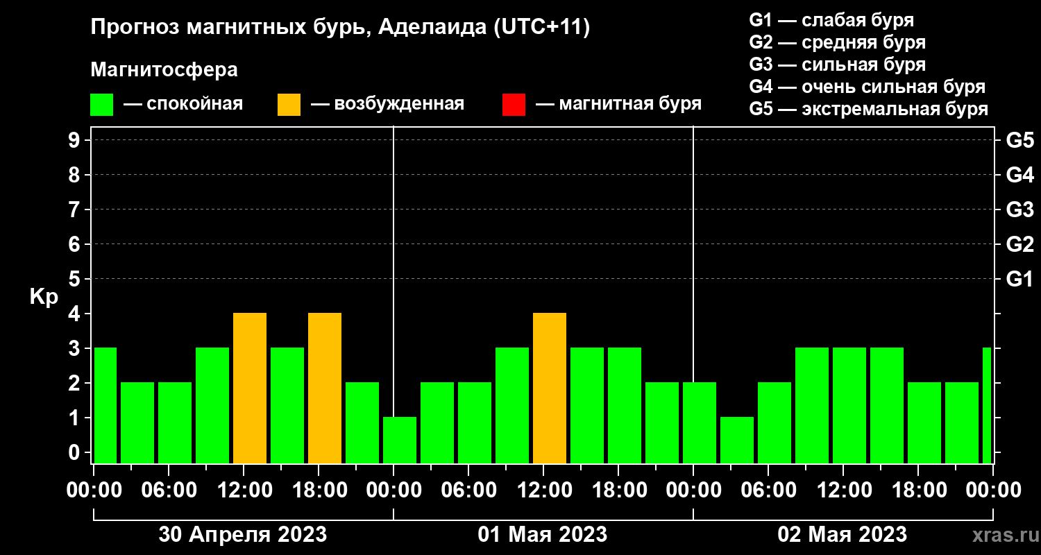 Прогноз магнитных бурь в Аделаиде — 30 апреля 2023 года