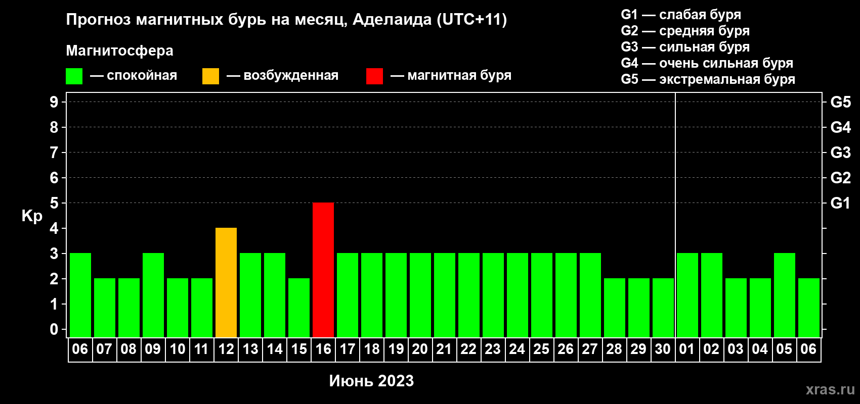 Прогноз магнитных бурь в Аделаиде — 6 июня 2023 года
