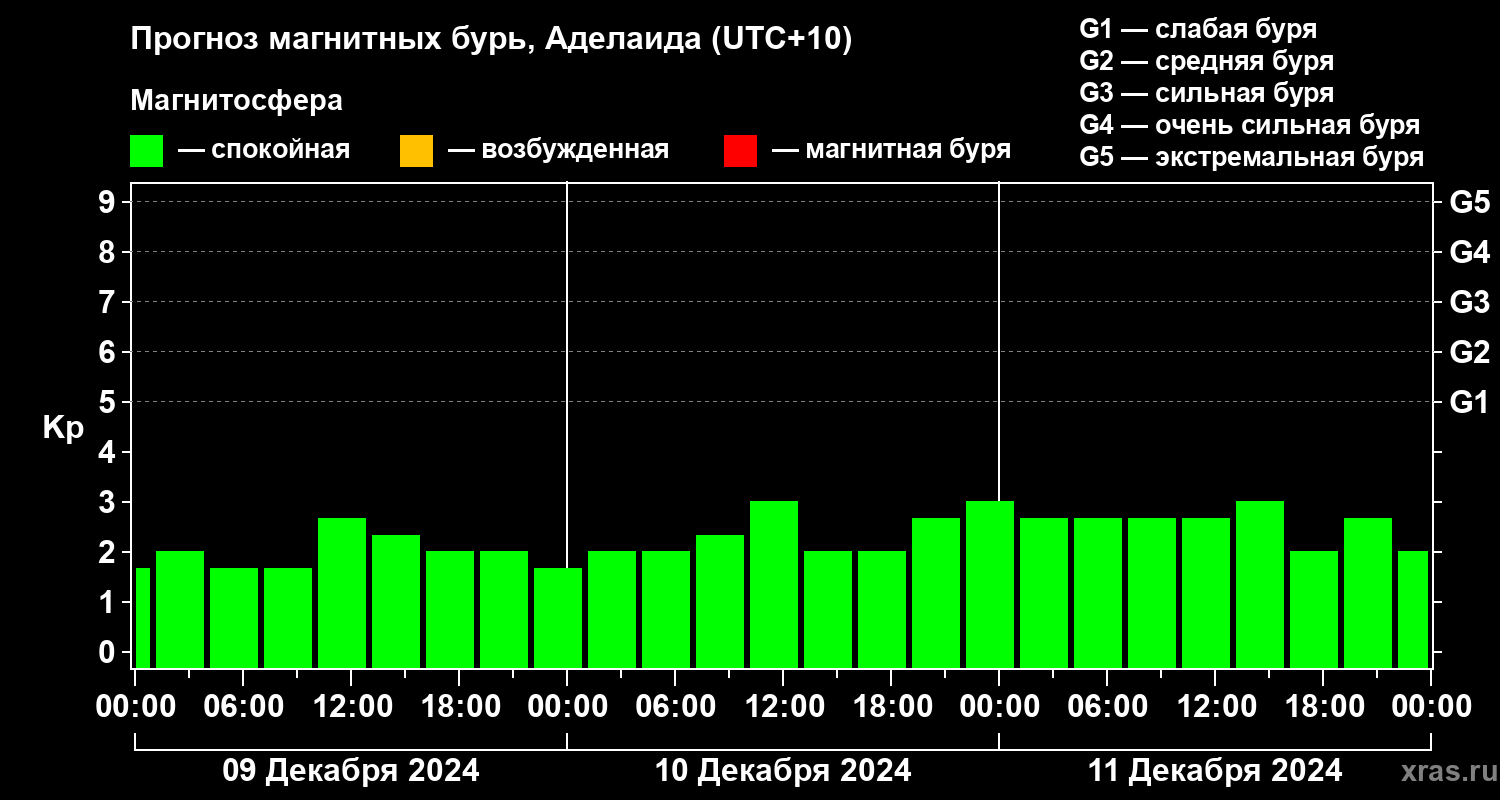 Прогноз магнитных бурь в Аделаиде — 9 декабря 2024 года