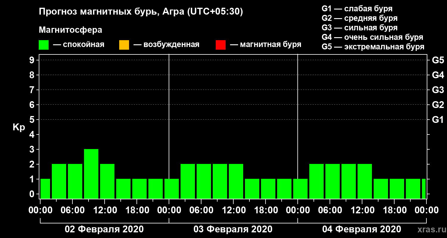 Прогноз магнитных бурь в Агре — 2 февраля 2020 года