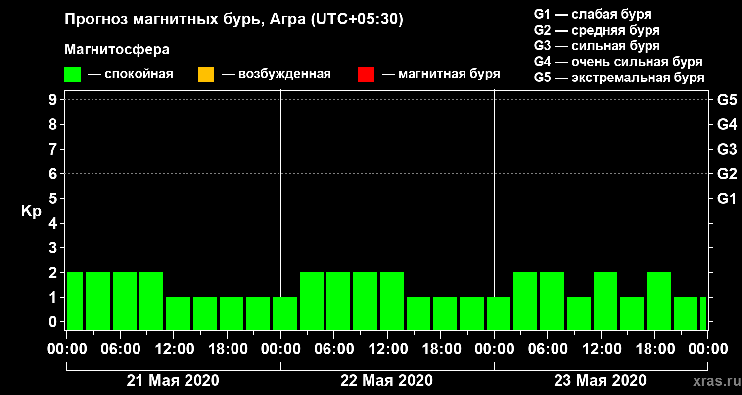 Прогноз магнитных бурь в Агре — 21 мая 2020 года