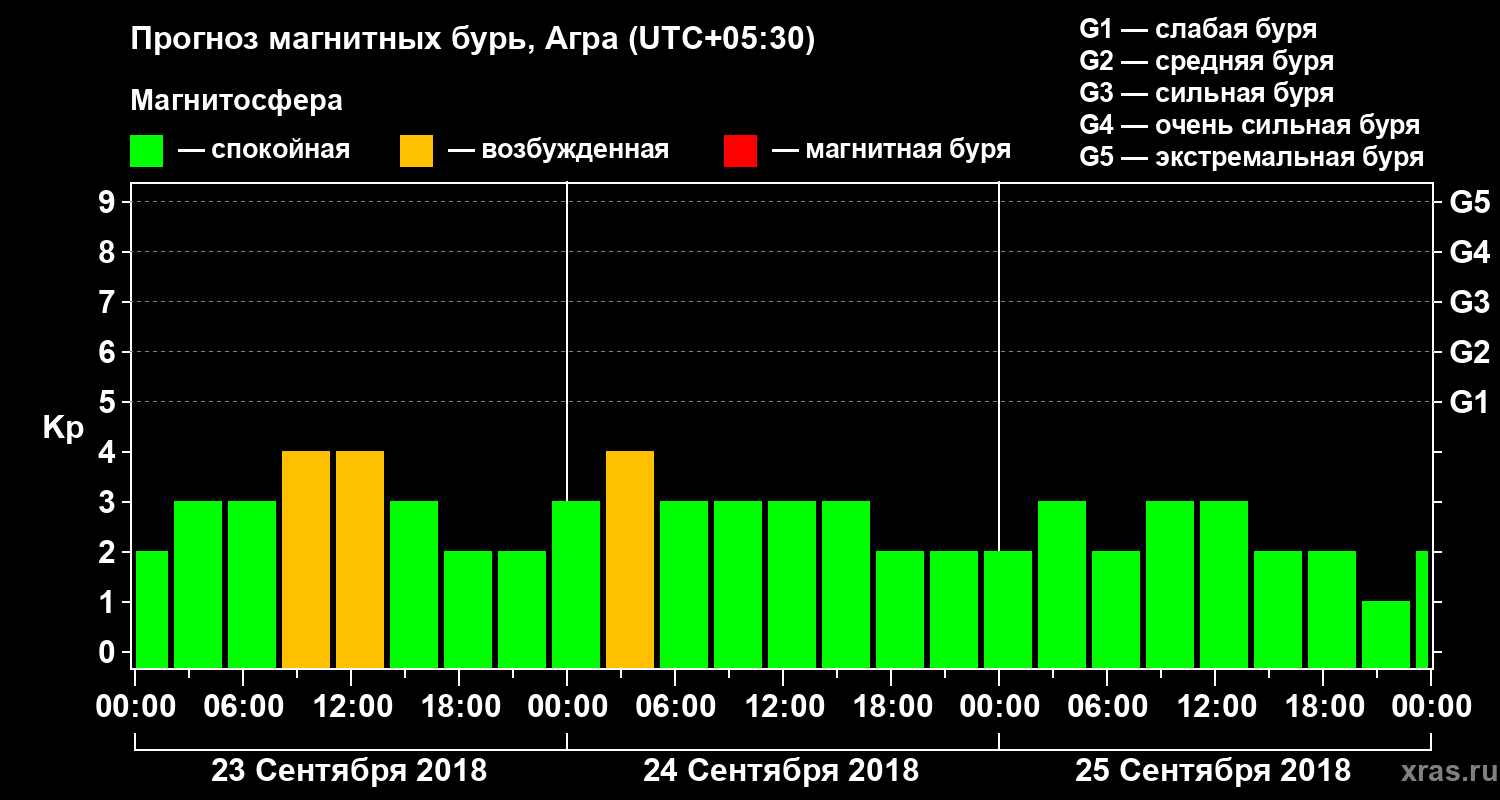 Прогноз магнитных бурь в Агре на 23 сентября 2018 года