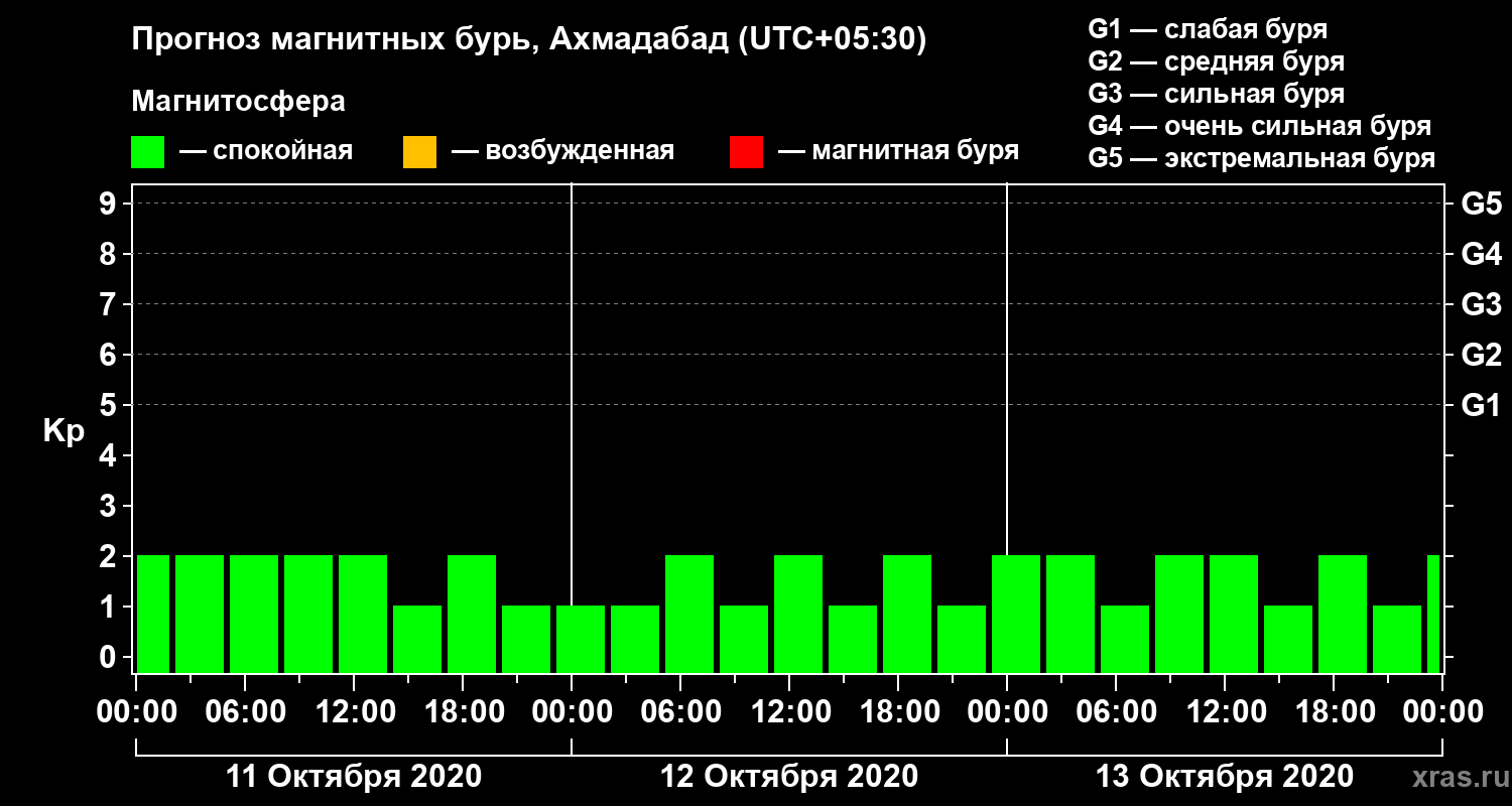 Прогноз магнитных бурь в Ахмадабаде — 11 октября 2020 года