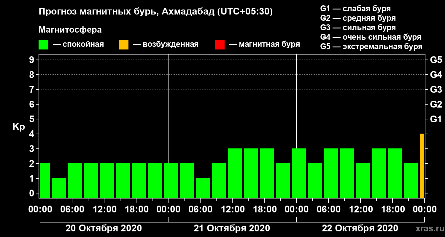 Прогноз магнитных бурь в Ахмадабаде — 20 октября 2020 года