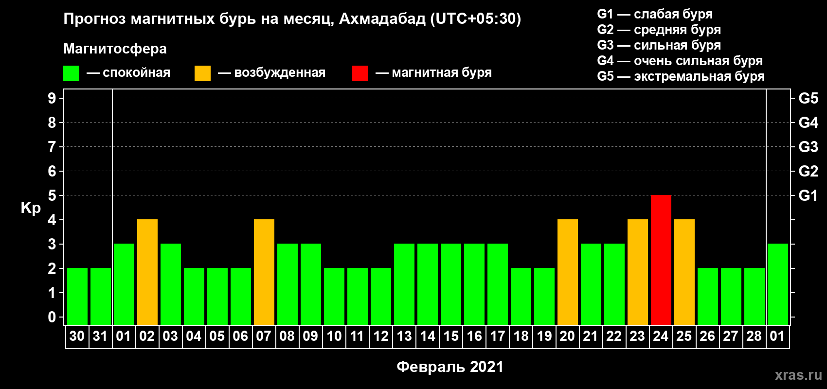 Прогноз магнитных бурь в Ахмадабаде — 30 января 2021 года