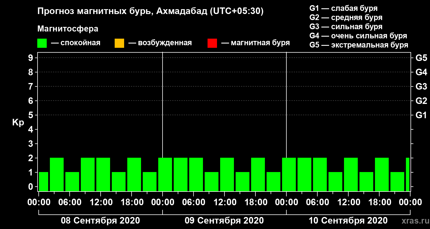 Прогноз магнитных бурь в Ахмадабаде — 8 сентября 2020 года