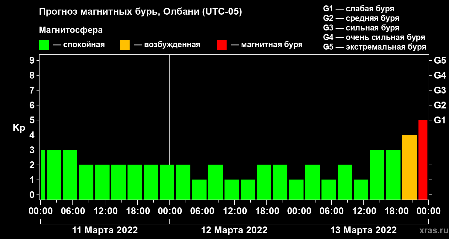 Прогноз магнитных бурь Олбани на 11 марта 2022 года