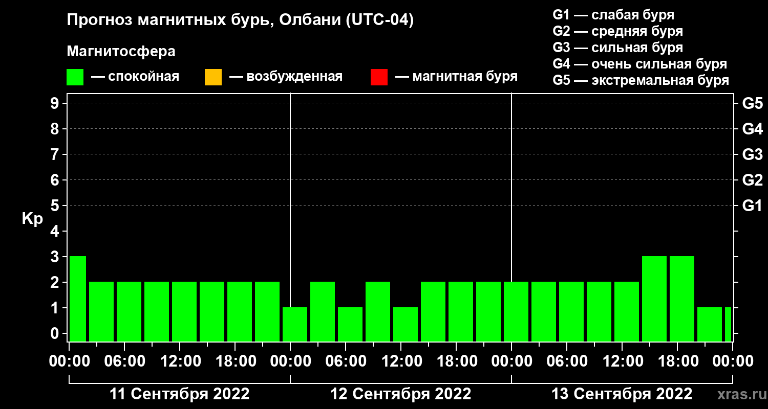 Прогноз магнитных бурь Олбани на 11 сентября 2022 года