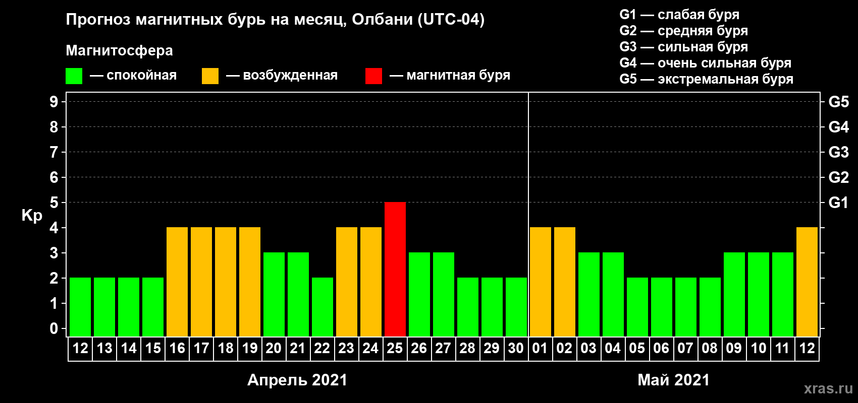 Прогноз магнитных бурь Олбани на 12 апреля 2021 года